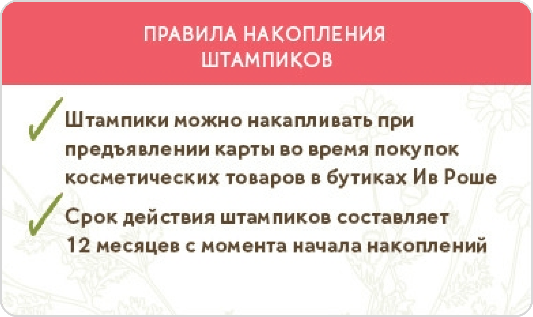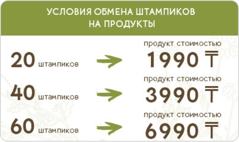 Накопление штампиков на карту постоянного покупателя за покупки и получение продуктов в подарок